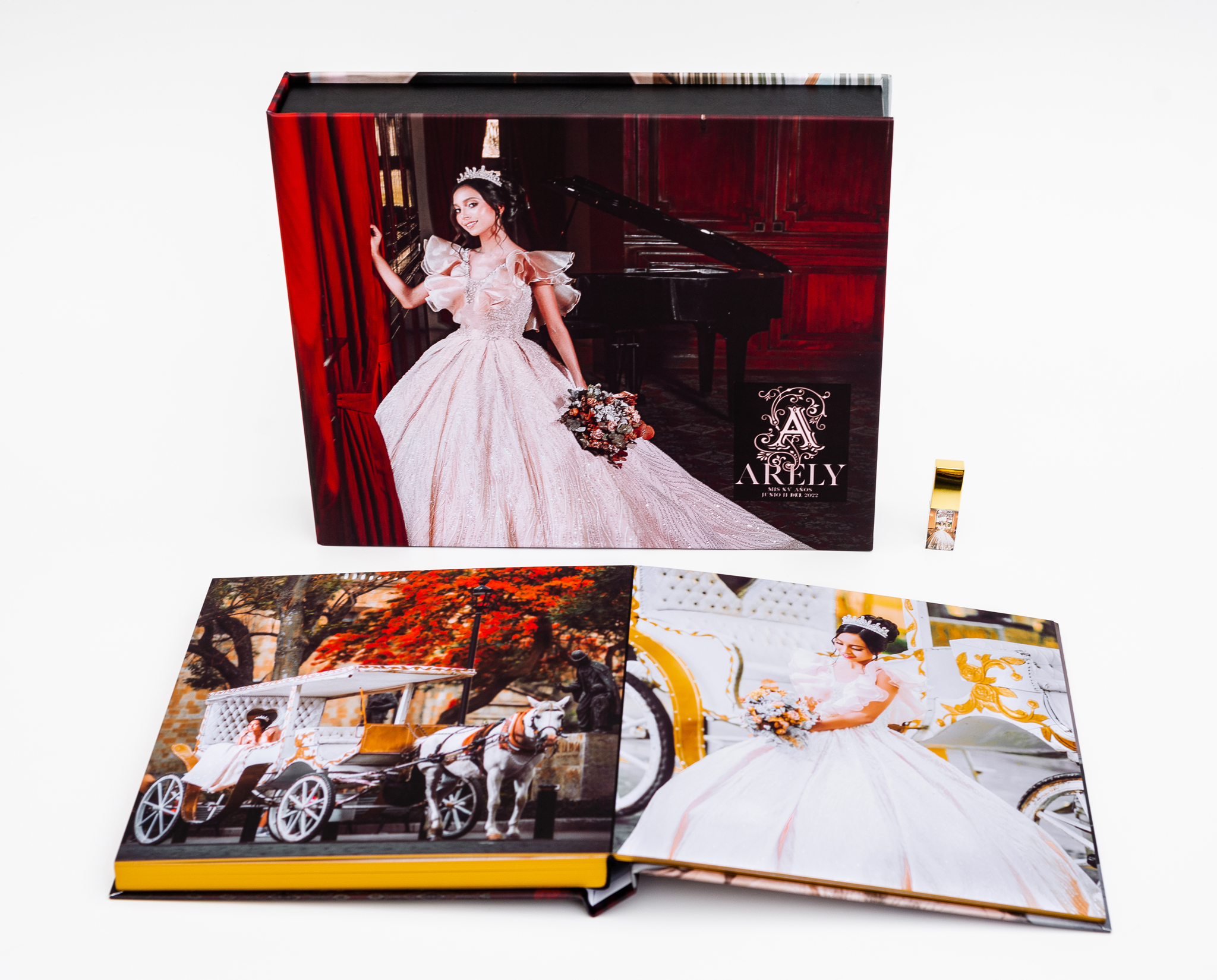 - Bodas: Un álbum impreso en papel Fine Art con Gilding Dorado (orillas de las páginas del álbum) y páginas extra gruesas con una encuadernación LayFlat, que te permitirá abrir las páginas de tu álbum a 180° sin preocuparte por desprender sus páginas, esta es una creación que apuesta por su evidente estética y su comprobada durabilidad